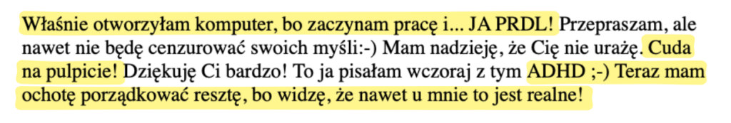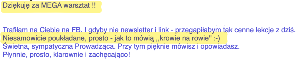 * Printscreeny pochodzą z maili od Asi, Sylwii i Doroty. Otrzymałam te wiadomości w kilka godzin po poprzedniej edycji warsztatu.